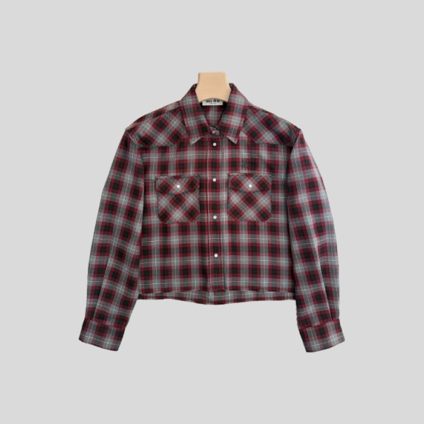미우미우 리버시클 트윌 체크 트렌치 코트