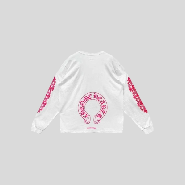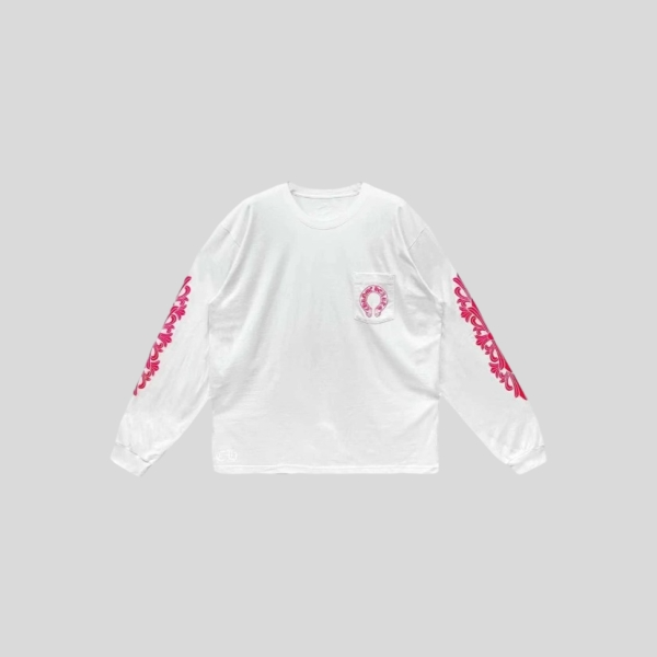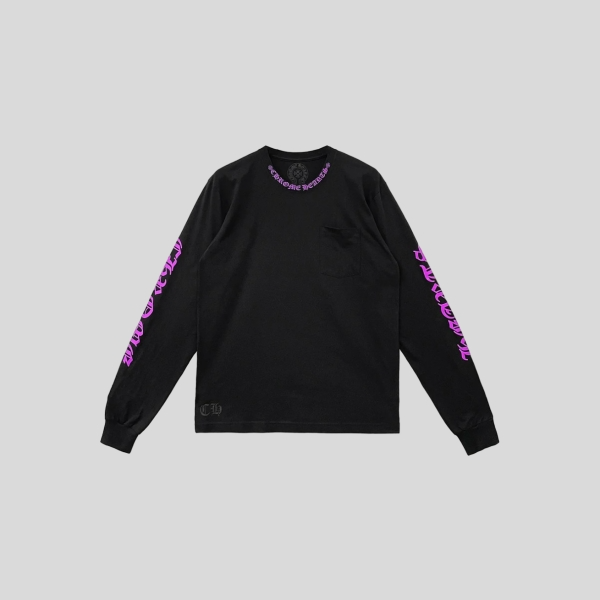 크롬하츠 넥 스크립트 로고 롱슬리브 티셔츠 블랙 핑크