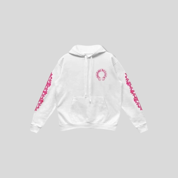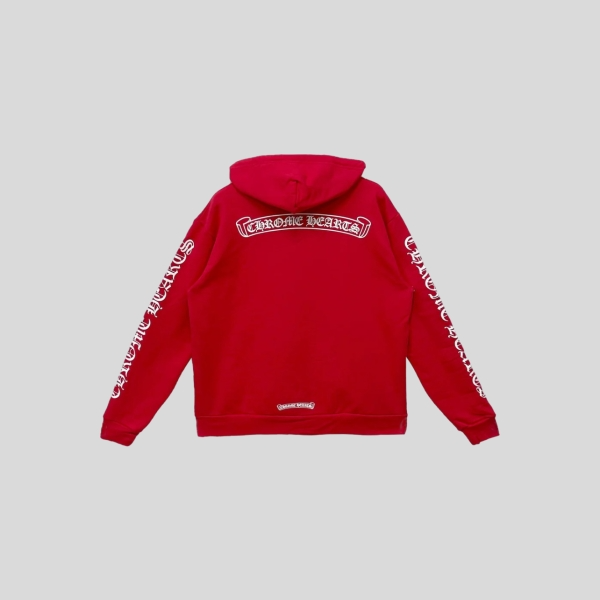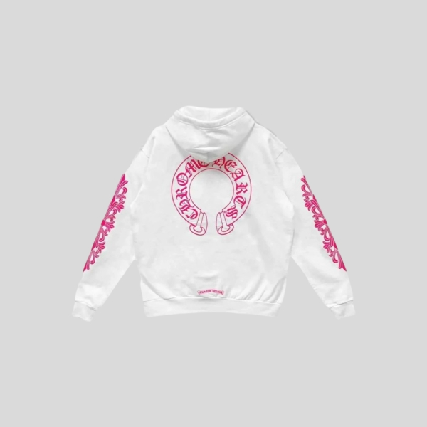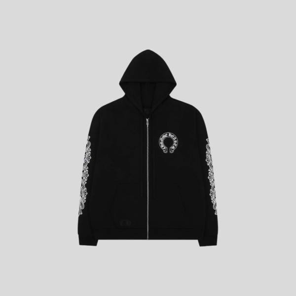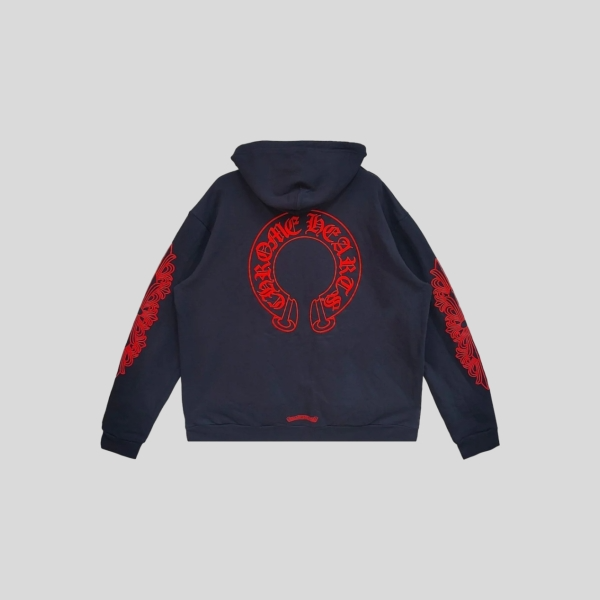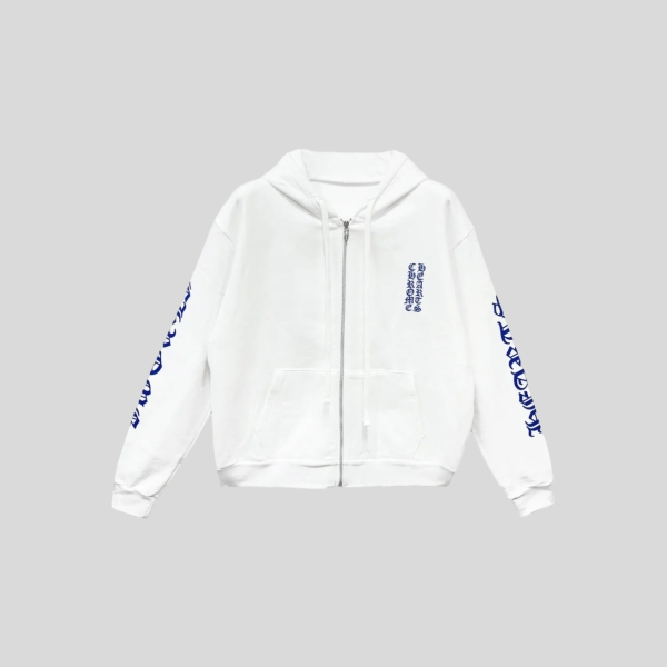 크롬하츠 블루 스크롤 화이트 지퍼업 후드 티셔츠