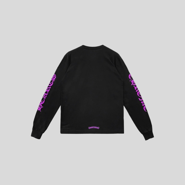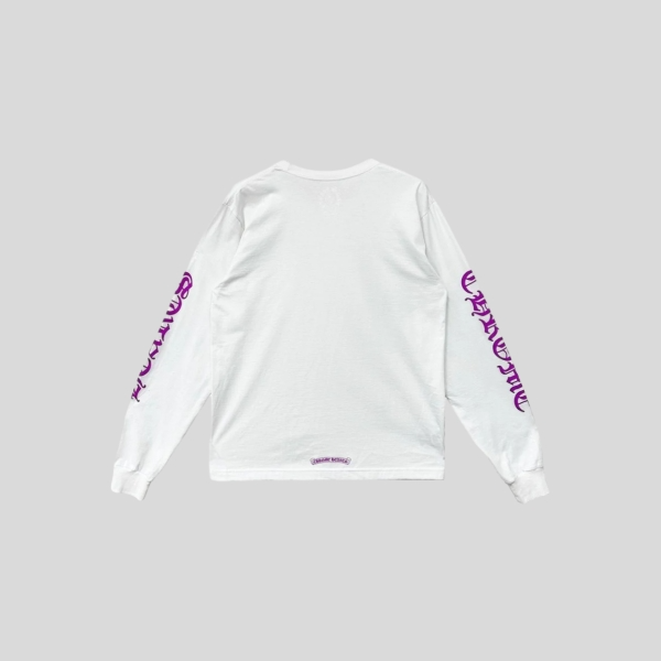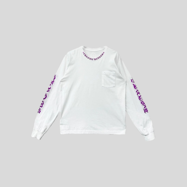 크롬하츠 넥 스크립트 로고 롱슬리브 티셔츠 화이트 퍼플