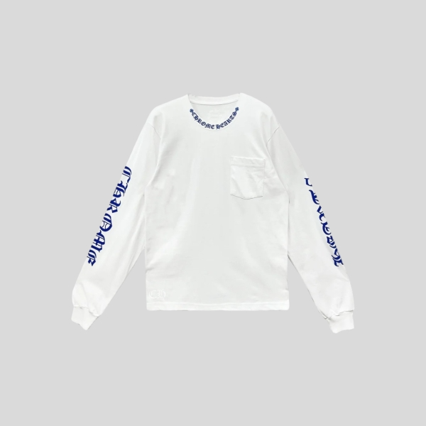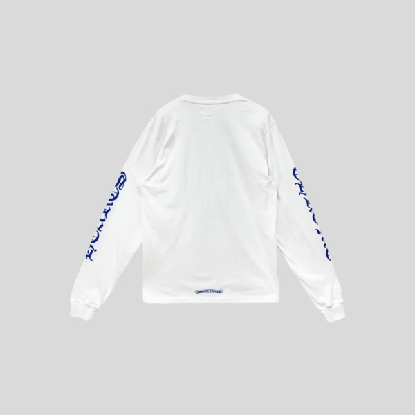 크롬하츠 넥 스크립트 로고 롱슬리브 티셔츠 화이트 블루
