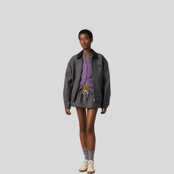 미우미우 프린스 오브 웨일즈 체크 및 본디드 저지 블루종 자켓, 스커트