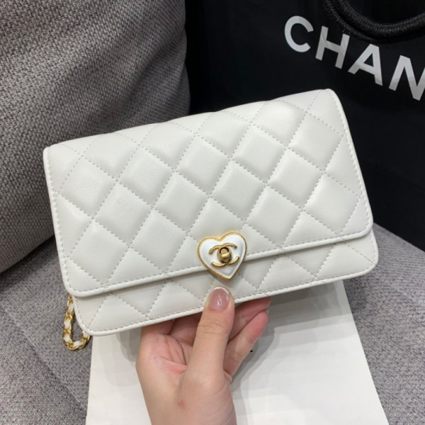 샤* 하트 턴락 WOC 체인 월렛 램스킨 크로스백 AP3285 > CHANEL