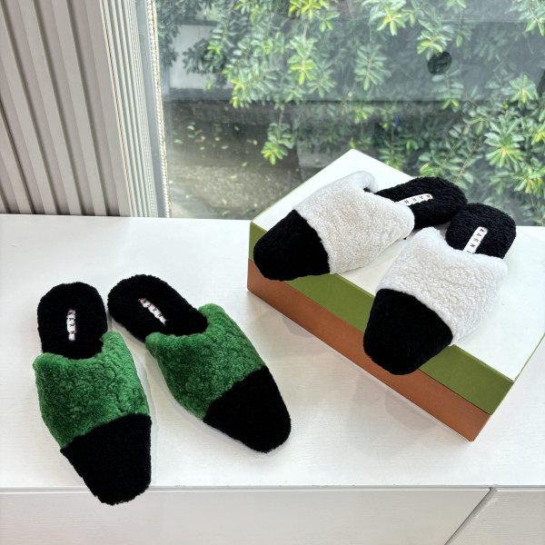 마*니 신상 배색 털 슬리퍼 > MARNI