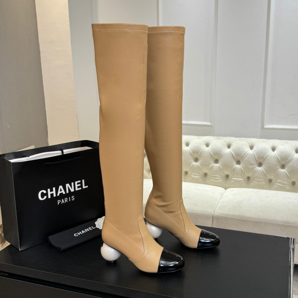 샤* 25A 신상 진주 굽 스판부츠 > CHANEL