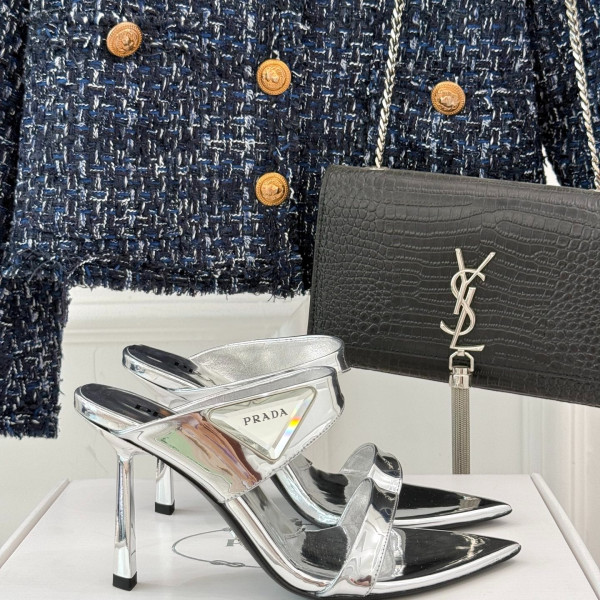 프*다 25WF 신상 삼각 버클 스틸레토 샌들 > PRADA
