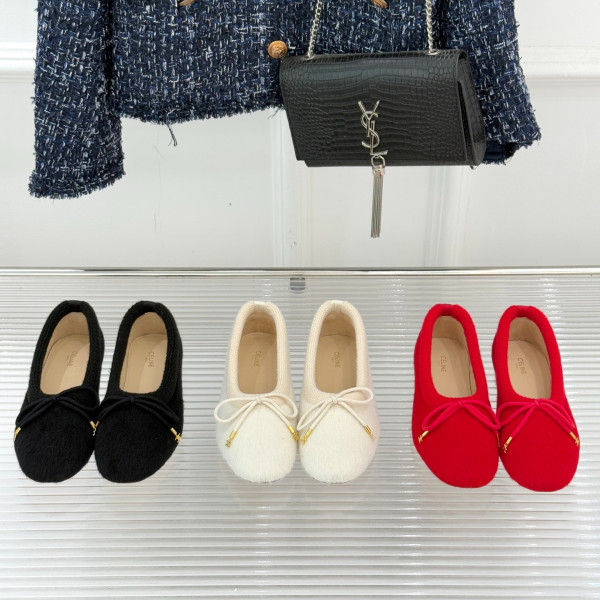 셀*느 25WF 신상 리본 니트 퍼 발레 슈즈 > CELINE