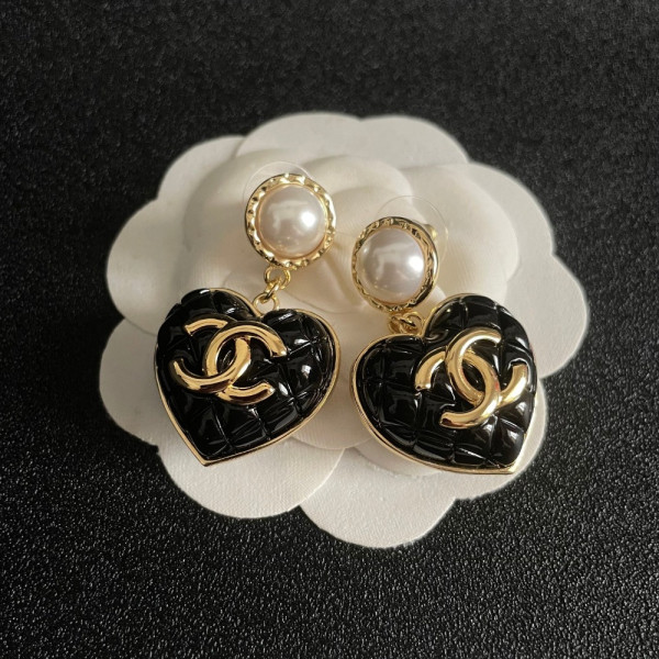 샤* CC 로고 진주 하트 귀걸이 이어링