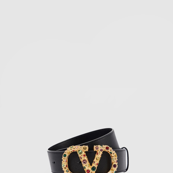 발렌티노 반짝이는 송아지 가죽의 브이로고 시그니처 벨트