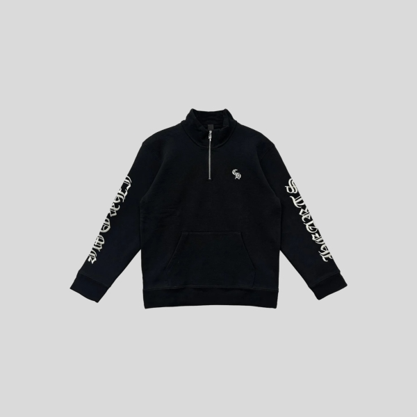 크롬하츠 스크립트 로고 자수 하프 지퍼 블랙 스웨트셔츠