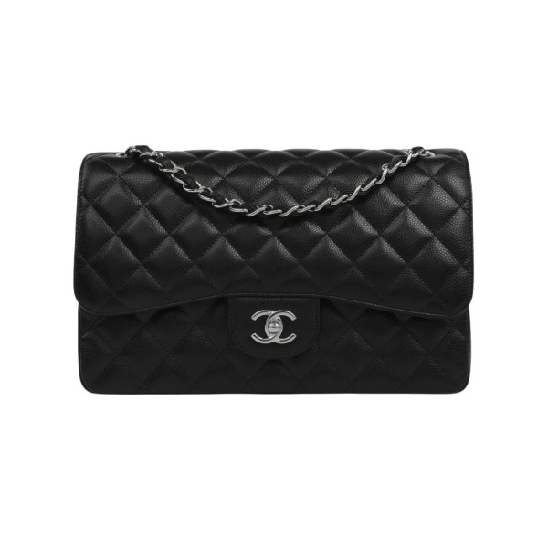 샤넬 클래식 라지 그레인드 카프스킨 블랙 은장