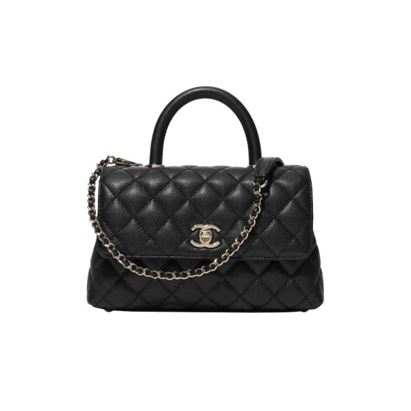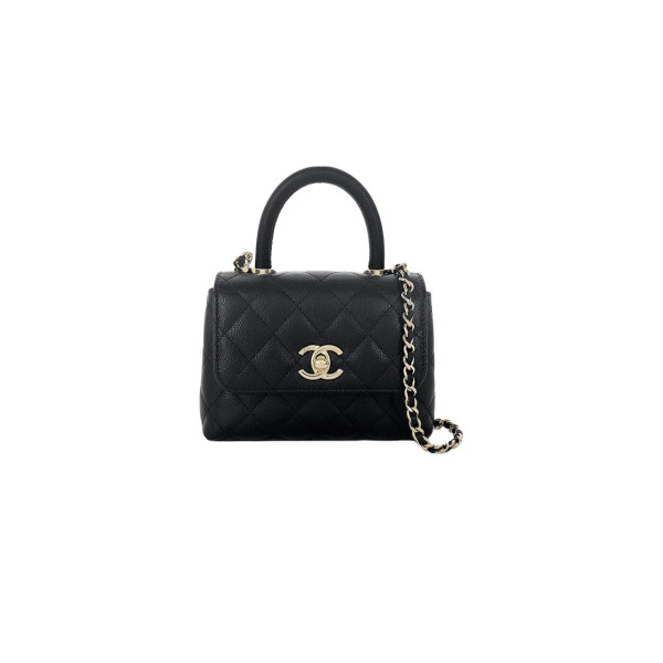 샤넬 코코핸들 미니 그레인드 카프스킨 블랙