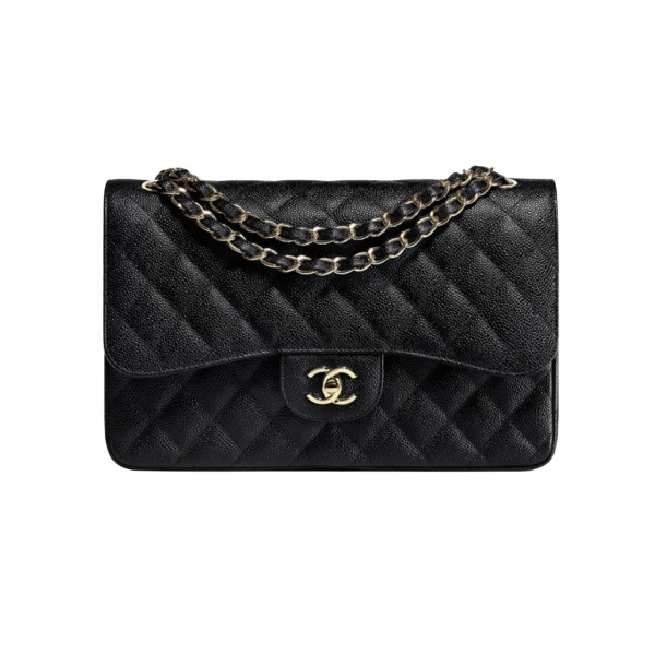 샤넬 클래식 라지 그레인드 카프스킨 블랙 금장
