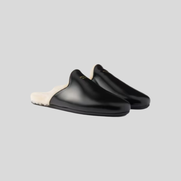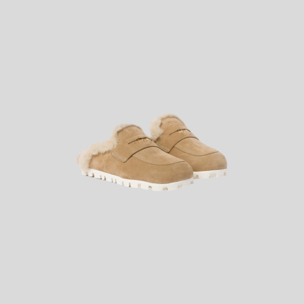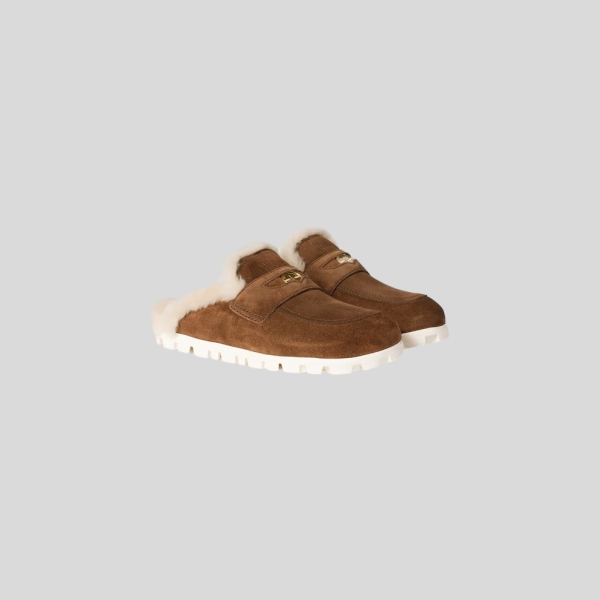 프라다 브러쉬드 가죽 시어링 뮬