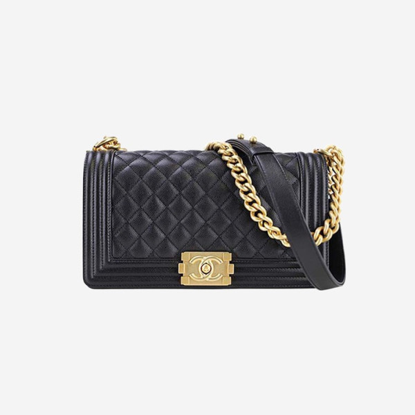 샤넬 보이백 미디움 캐비어 블랙 골드