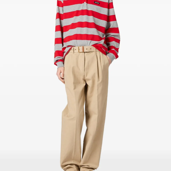 미우미우 스트라이프 긴소매 폴로 셔츠