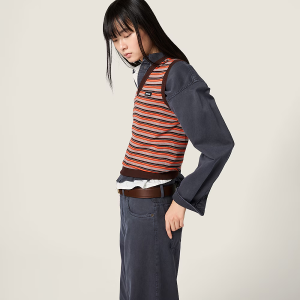 미우미우 스트라이프 저지 폴로 셔츠