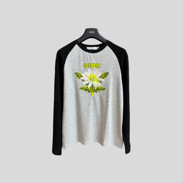 디올 플로럴 자수 긴팔 티셔츠